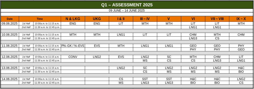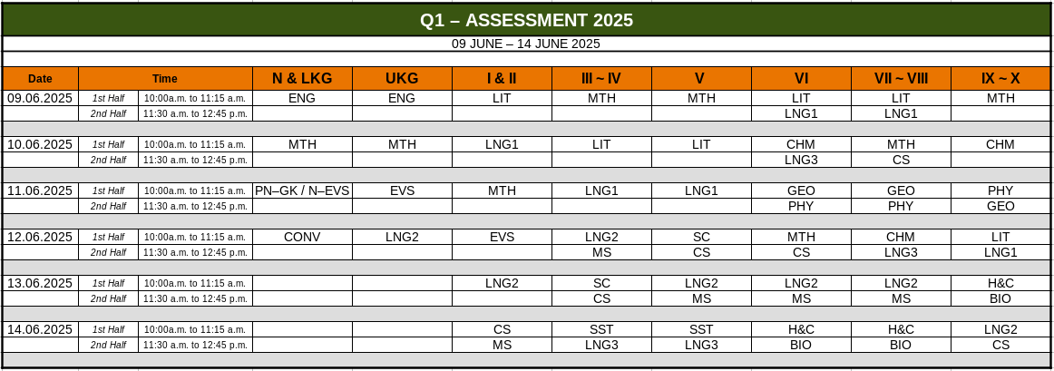 Full Payment of tuition fees and bus service fees for the months of April-May-June 2025 is a prerequisite for the issuance of students Admit Cards. Please pay your dues well before the start of Q1 to avoid the last minute rush.